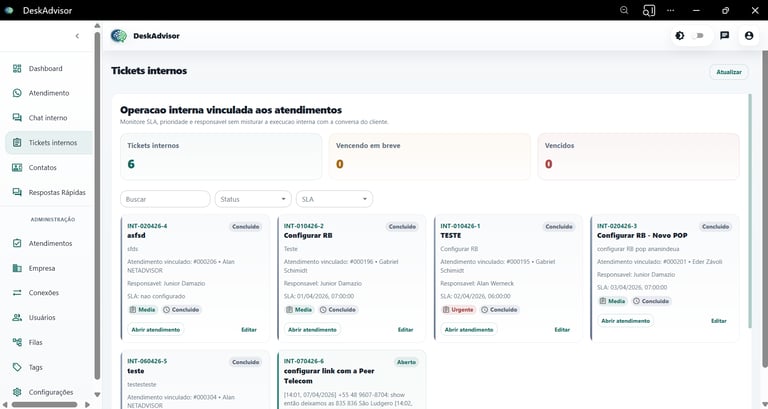 Na DeskAdvisor, oferecemos soluções robustas para multi atendimentos, garantindo eficiência e clareza em cada interação.